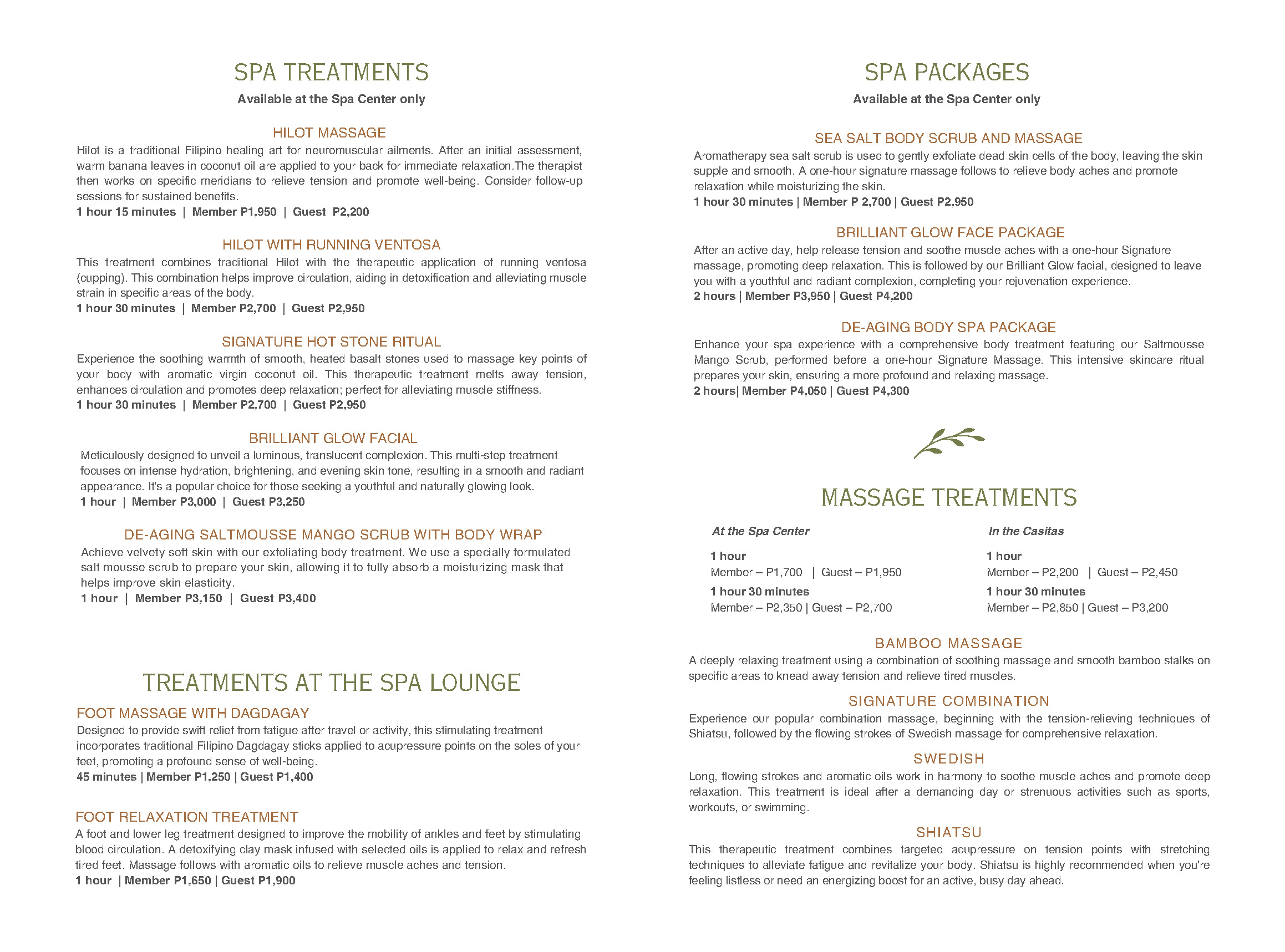 THE VEDA SPA FACILITIES & AMENITIES